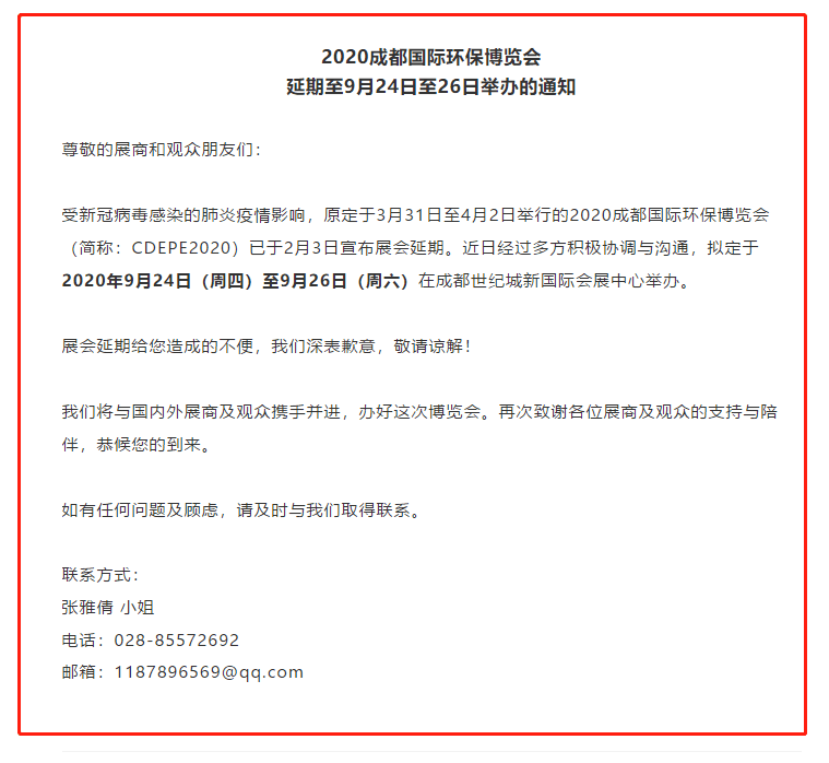根據(jù)成都環(huán)博會(huì)設(shè)計(jì)搭建公司領(lǐng)藝展覽了解到,原定于3月31日至4月2日舉行的2020成都國(guó)際環(huán)保博覽會(huì)(簡(jiǎn)稱(chēng):CDEPE2020)已于2月3日宣布展會(huì)延期。近日經(jīng)過(guò)多方積極協(xié)調(diào)與溝通,擬定于2020年9月24日(周四)至9月26日(周六)在成都世紀(jì)城新國(guó)際會(huì)展中心舉辦。如需環(huán)博會(huì)設(shè)計(jì)請(qǐng)聯(lián)系領(lǐng)藝展覽,希望我們能在環(huán)博會(huì)搭建上為您添磚加瓦,祝各位朋友收獲多多,滿(mǎn)載而歸!